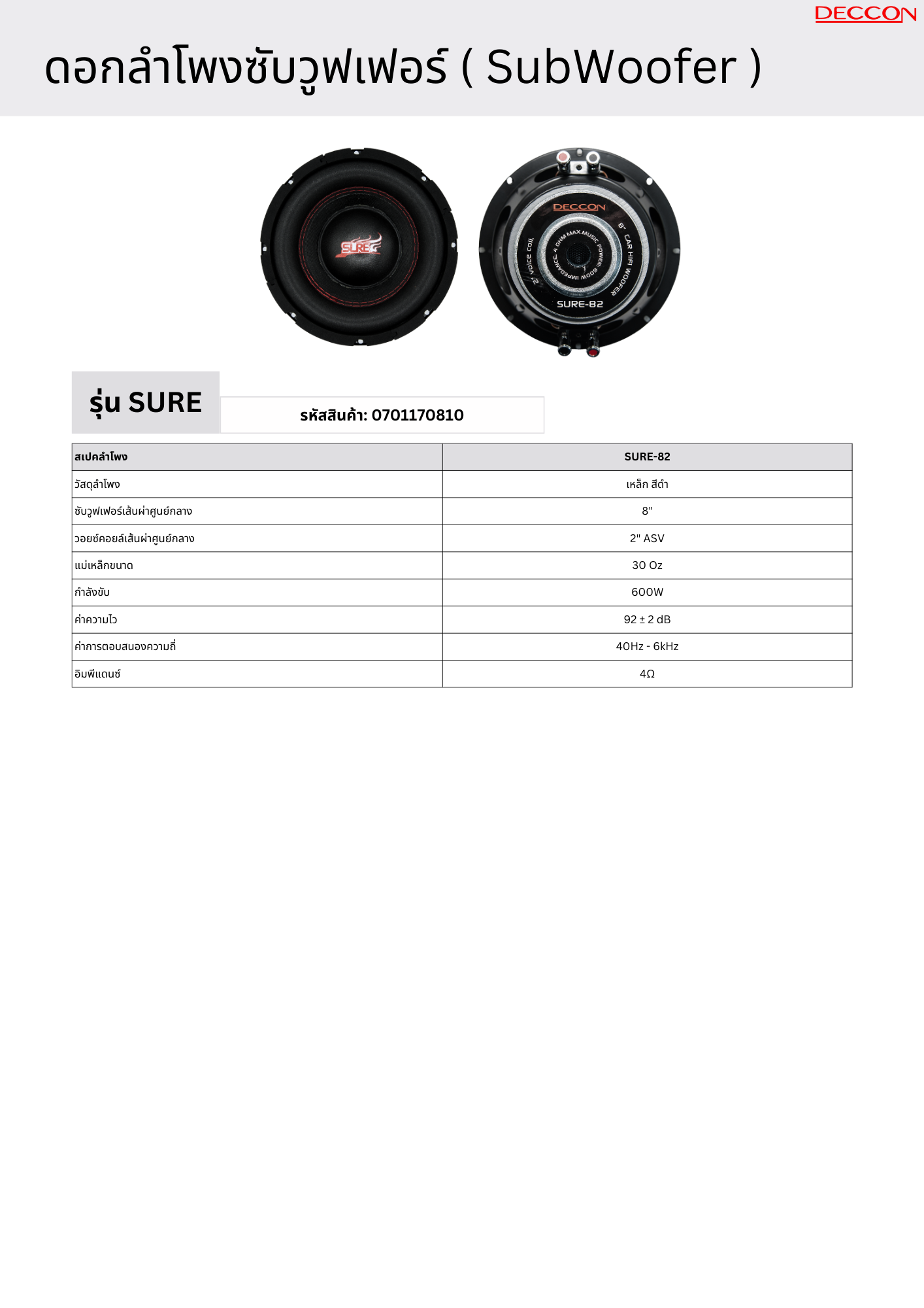ดอกลำโพงซับวูฟเฟอร์ รุ่น SURE-82