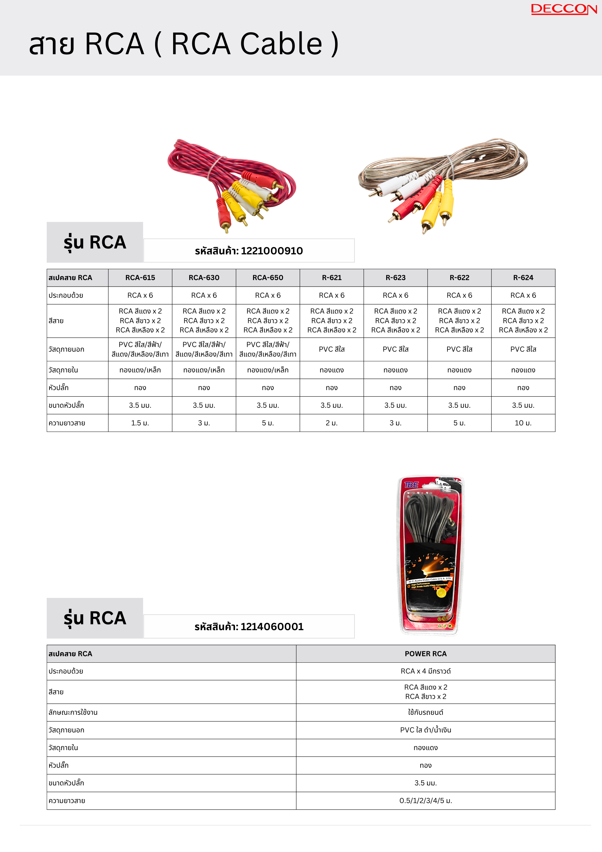 | สีสาย | RCA สีแดง x 2 RCA สีขาว x 2 |