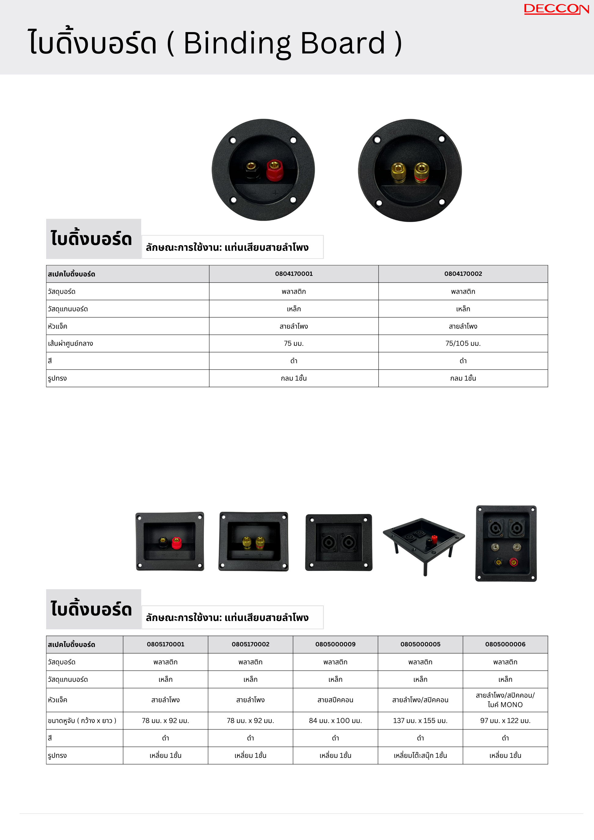 ไบดิ้งบอร์ดสายลำโพง คือแผงเชื่อมต่อที่ใช้สำหรับยึดสายลำโพงกับเครื่องเสียงหรืออุปกรณ์ต่างๆ ช่วยให้การเชื่อมต่อมั่นคง ปลอดภัย และให้เสียงที่คมชัด มีคุณภาพ