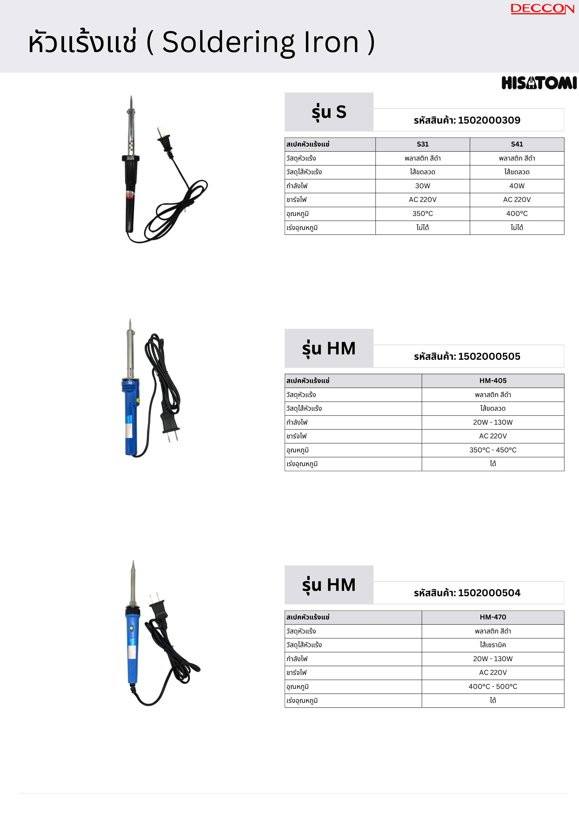 | วัสดุหัวแร้ง | พลาสติก สีดำ |